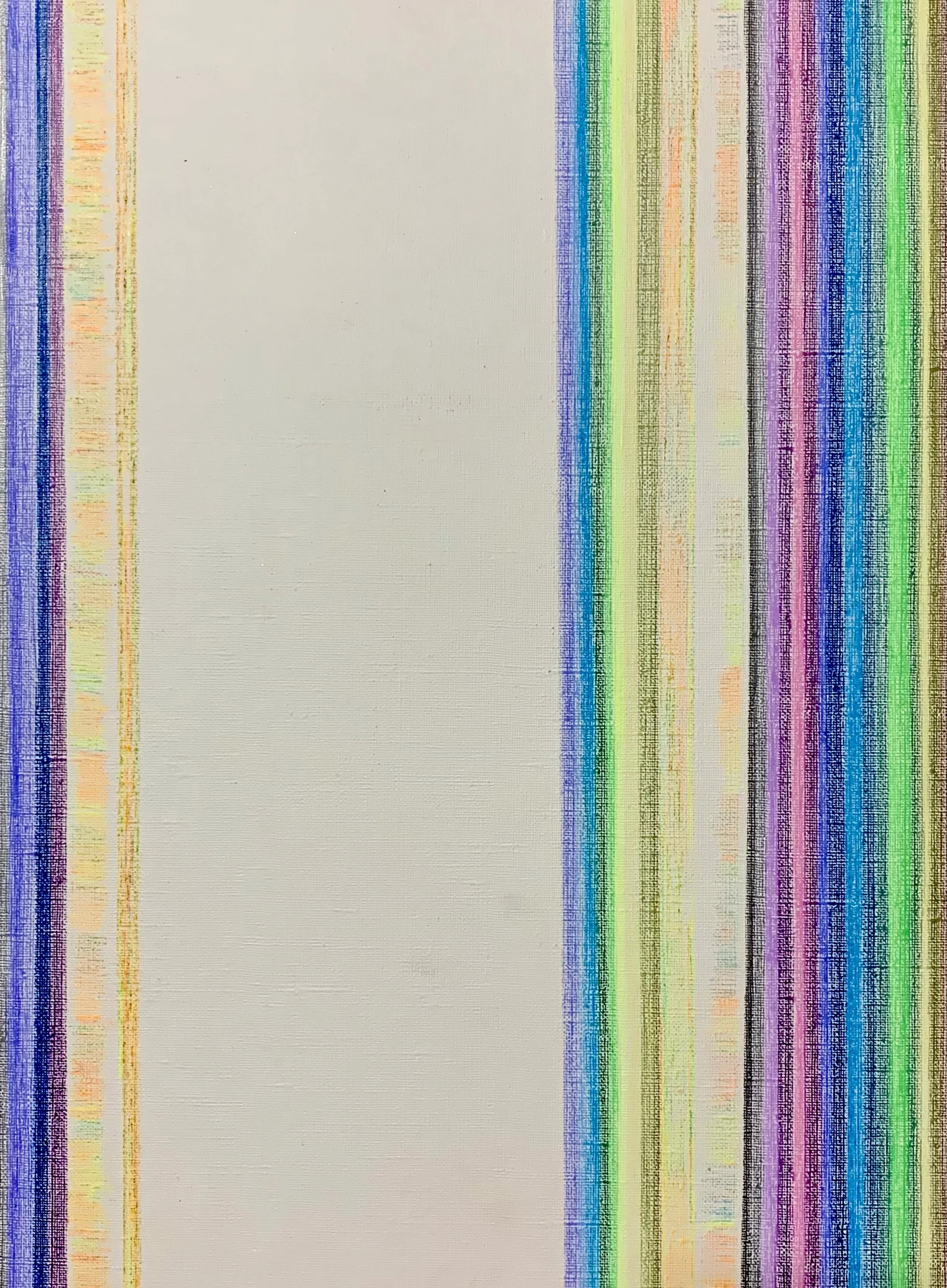 Trabajo sobre papel lino, un soporte que al colorear genera nudos, desvíos y texturas imprevistas: anomalías que, como en la vida, nos invitan a cambiar el rumbo.
