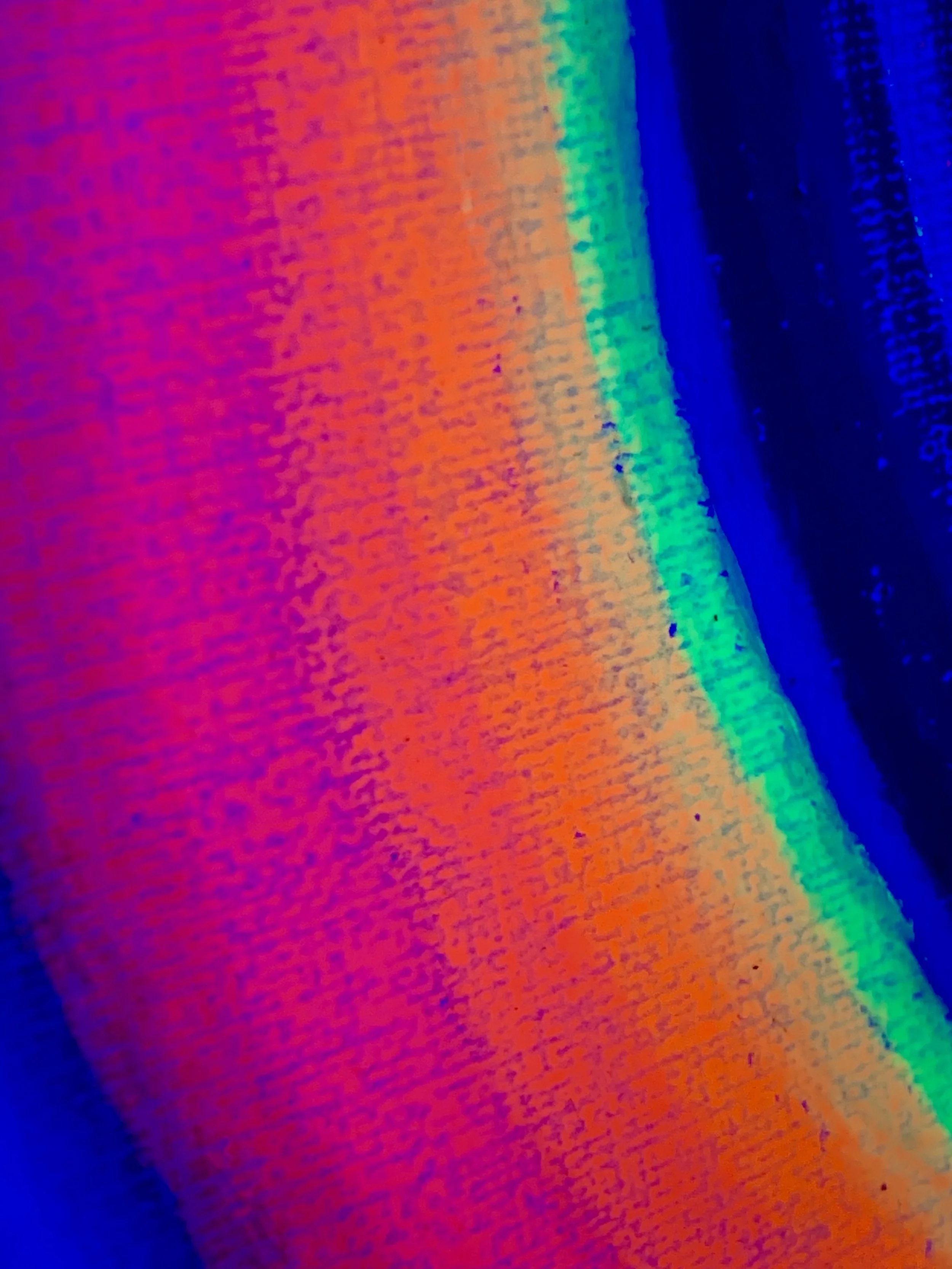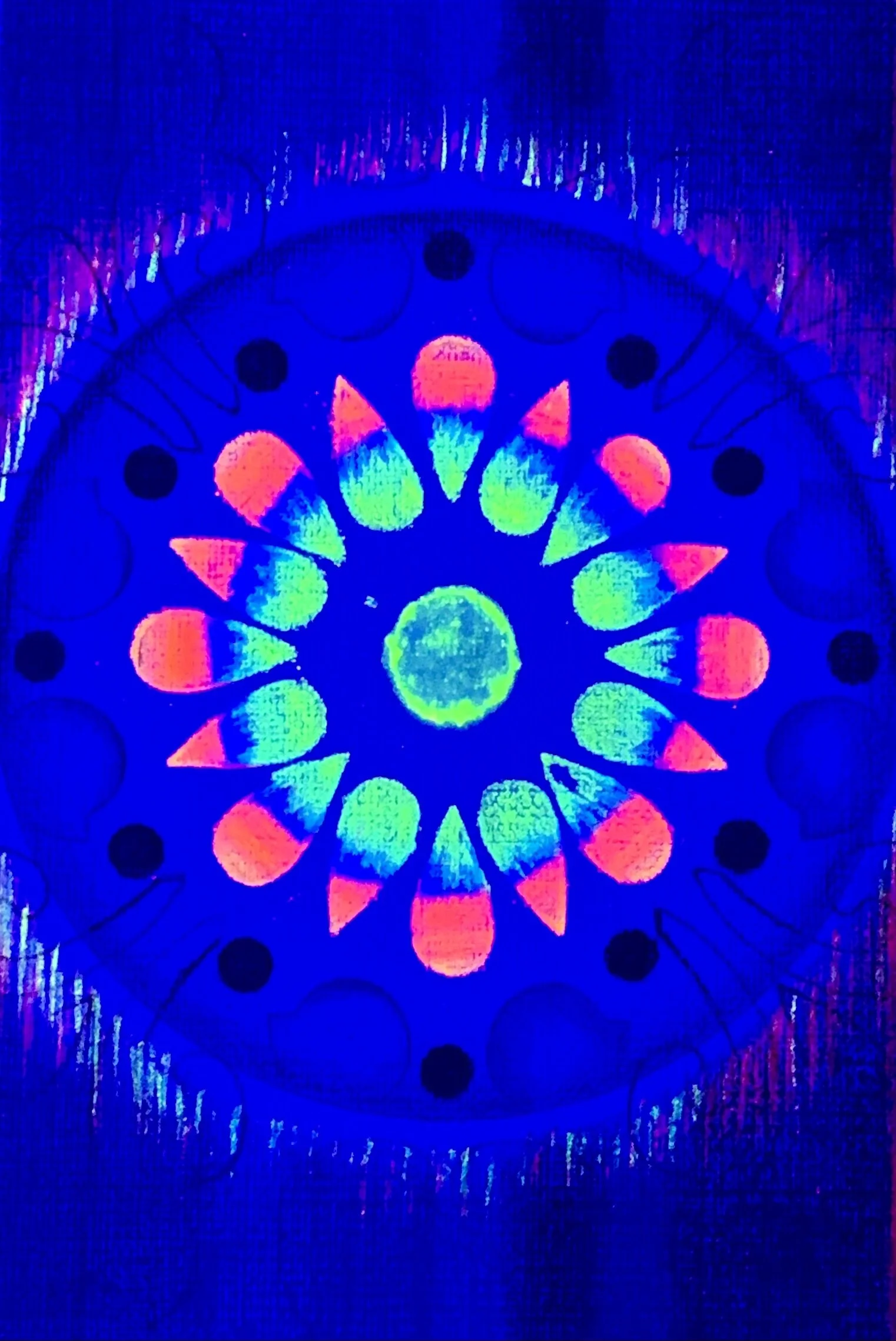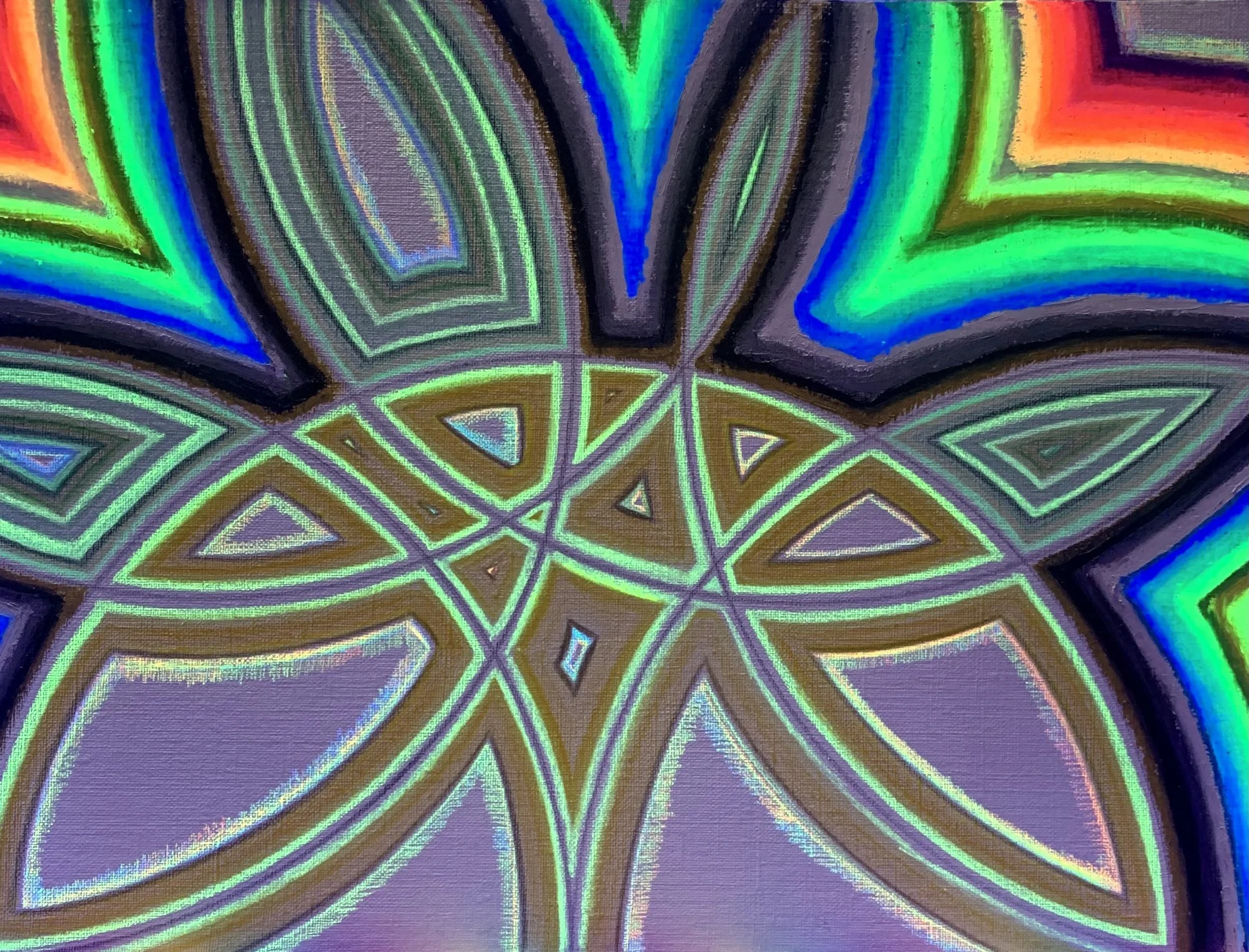 Trabajando con grafito, colores fluorescentes y pasteles, las obras exploran el contraste entre precisión y espontaneidad, entre control y fluidez. Cada trazo se asienta en el papel como una huella irreversible, recordando que en el arte —como en la vida— cada gesto nos conduce a un punto de transformación.